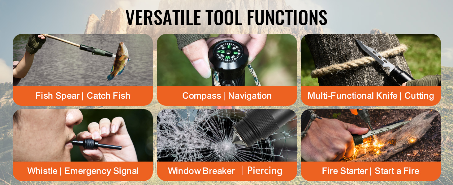Rôzne nástroje pre rôzne funkcie spĺňajú všetky vaše potreby v exteriéri, od sekania po kopanie, čím zabezpečia, že budete pripravení na akýkoľvek scenár.