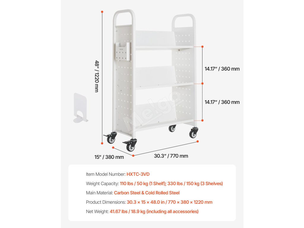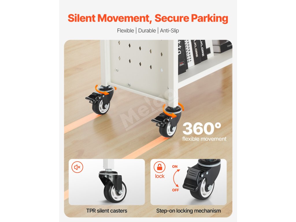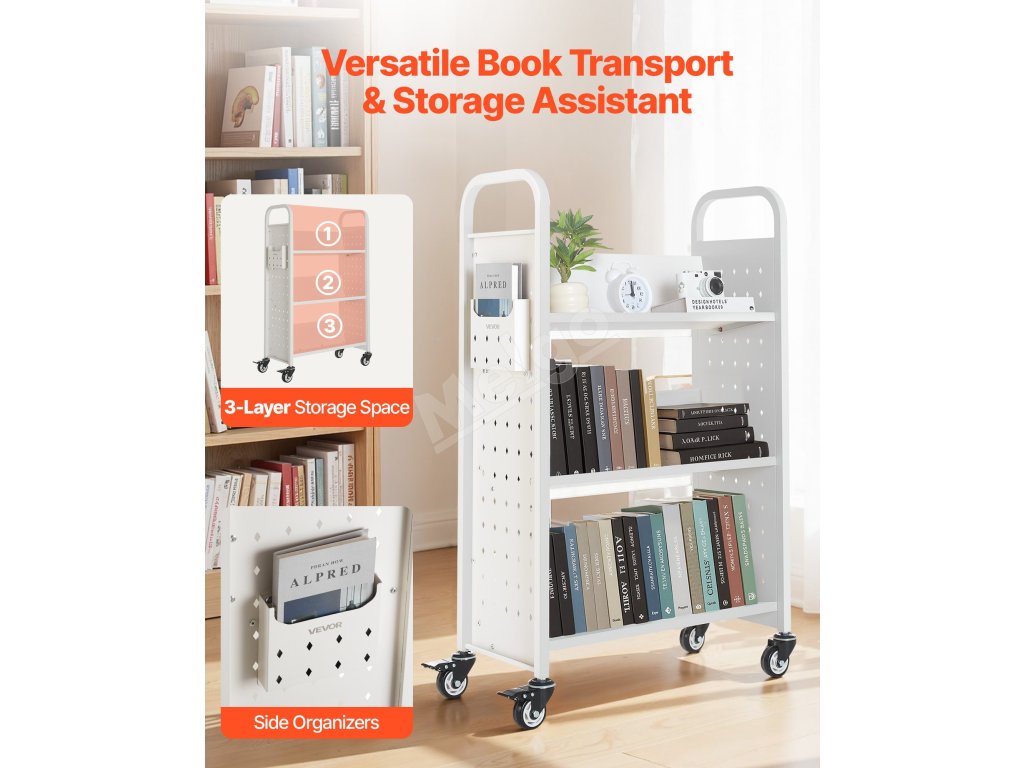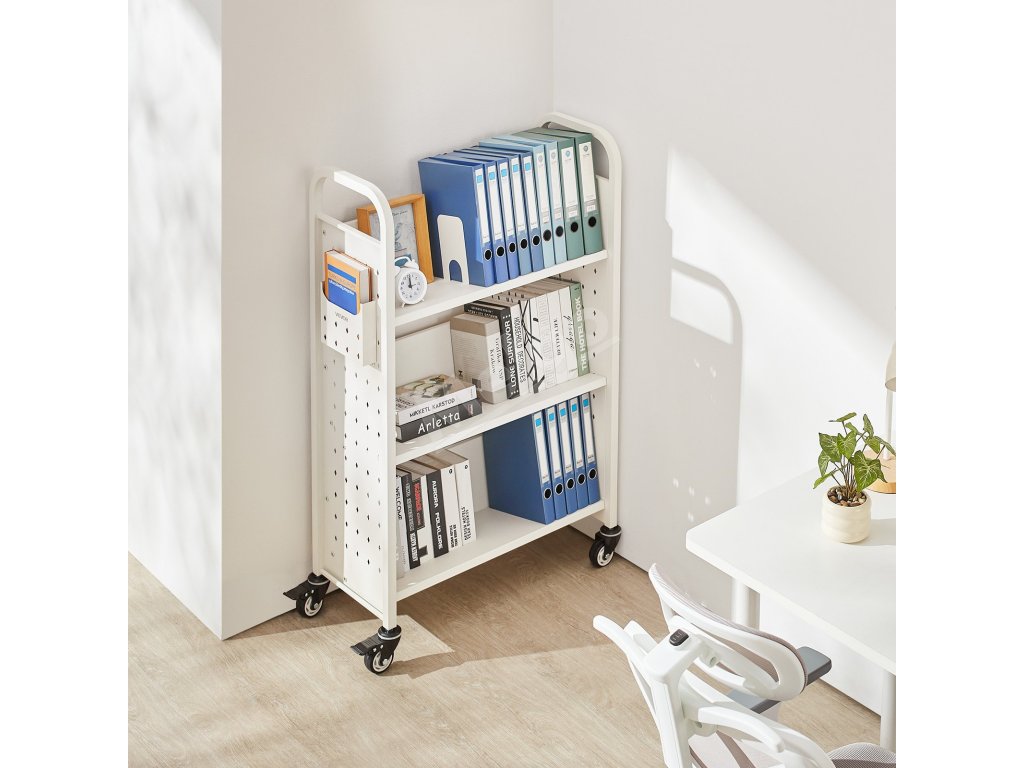 Tento knižný vozík kombinuje ukladanie, prepravu a vystavovanie, takže je dokonalým nástrojom na organizáciu vašich kníh, spisov a pomôcok - ideálny na použitie v práci aj doma!