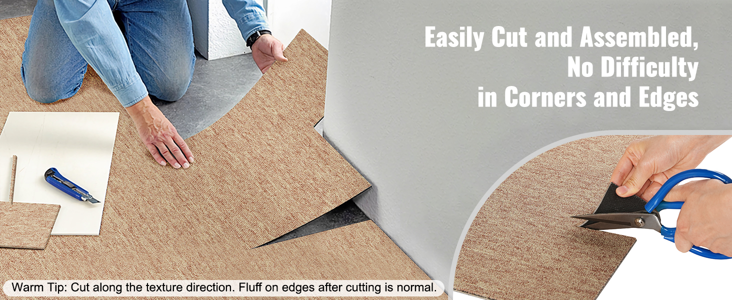 Tento koberec môžete ľahko zastrihnúť tak, aby sa zmestil do akéhokoľvek rohu alebo nepravidelného priestoru vo vašej domácnosti, čím sa eliminuje potreba riešiť nepríjemné alebo nerovné plochy a zabezpečí sa plne kobercový vzhľad v celom dome.