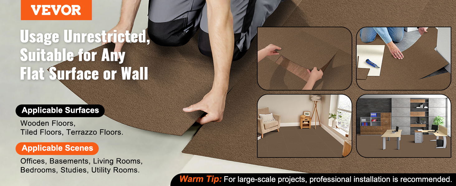 Tento jednofarebný modulárny koberec je neuveriteľne všestranný, má krátky vlas, jednoduchú údržbu a zabudovaný lepiaci podklad. Nie je potrebné žiadne dodatočné lepidlo, čo umožňuje bezproblémovú výmenu poškodených dlaždíc. Zvyšuje teplo, znižuje hluk, tlmí a chráni tvrdé podlahy.