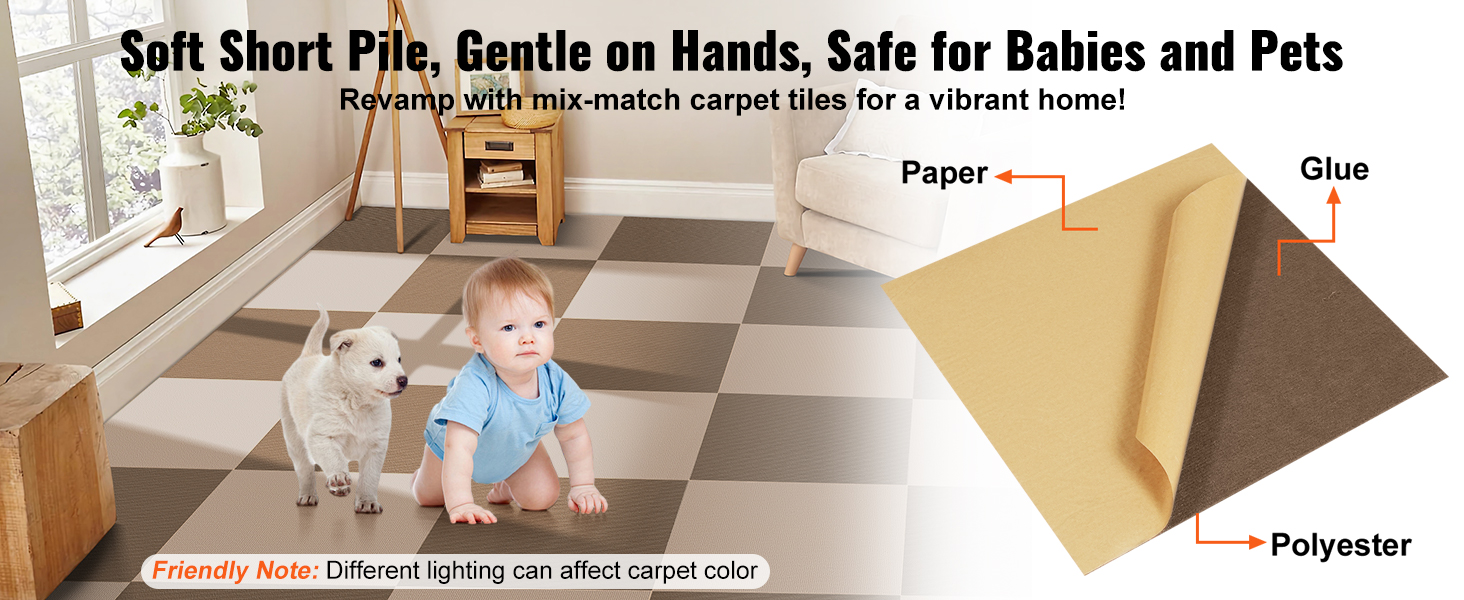 Tento modulárny koberec, vyrobený z prvotriednych materiálov, má mäkký, plyšový vlas, ktorý je jemný k pokožke, takže je bezpečný pre deti a domáce zvieratá, ktoré sa na ňom môžu plaziť a hrať.