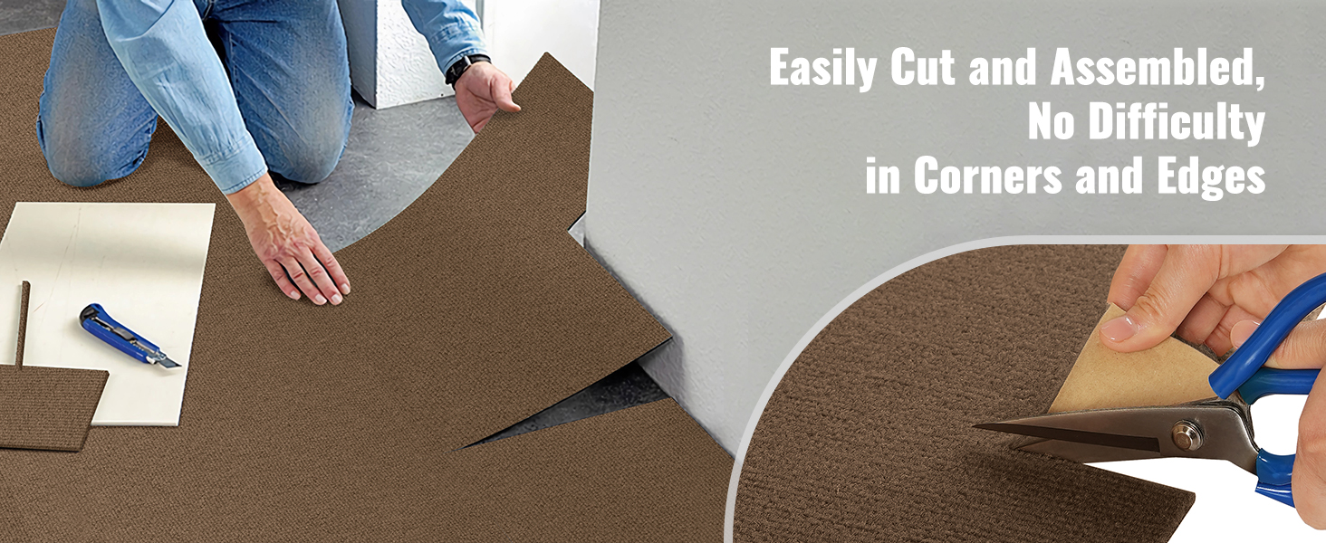 Tento koberec môžete ľahko zastrihnúť tak, aby sa zmestil do akéhokoľvek rohu alebo nepravidelného priestoru vo vašej domácnosti, čím sa eliminuje potreba riešiť nepríjemné alebo nerovné plochy a zabezpečí sa plne kobercový vzhľad v celom dome.