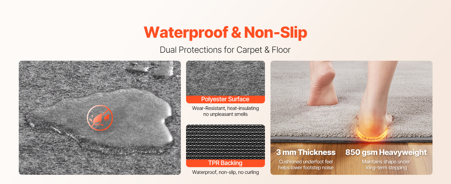 Podložka pod koberec s TPR podkladom zabraňuje kĺzaniu koberca na drevených, dlažbových alebo kobercových podlahách, čím zabezpečuje bezpečnosť vás a vašich domácich miláčikov pri chôdzi alebo hraní.
