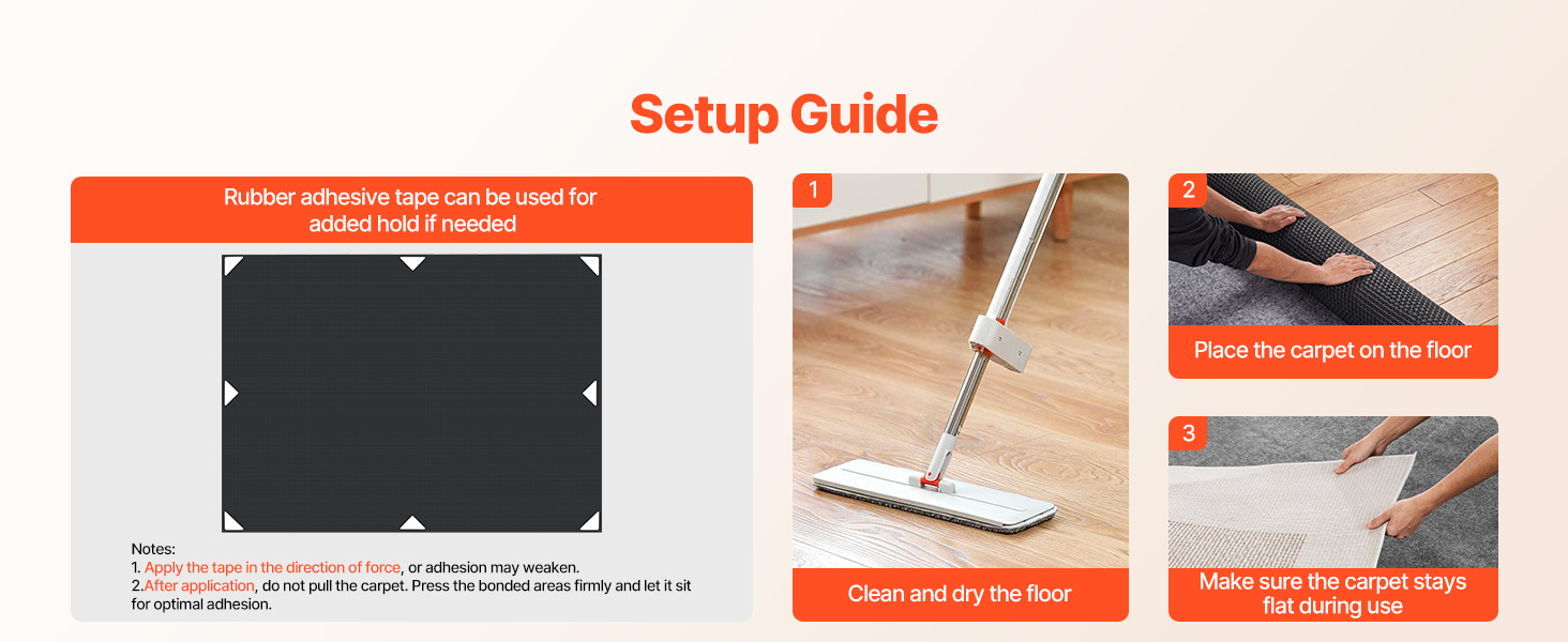 Naša podložka pod koberec obsahuje 8 gumových podložiek. Pre správnu funkčnosť sa uistite, že nálepky sú nalepené iba na podložke z TPR, podľa schémy smeru tlaku.