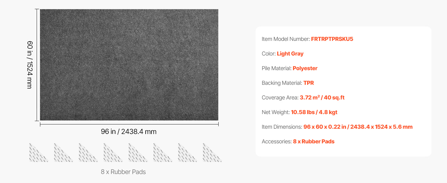 Naša podložka pod koberec obsahuje 8 gumových podložiek. Pre správnu funkčnosť sa uistite, že nálepky sú nalepené iba na podložke z TPR, podľa schémy smeru tlaku.