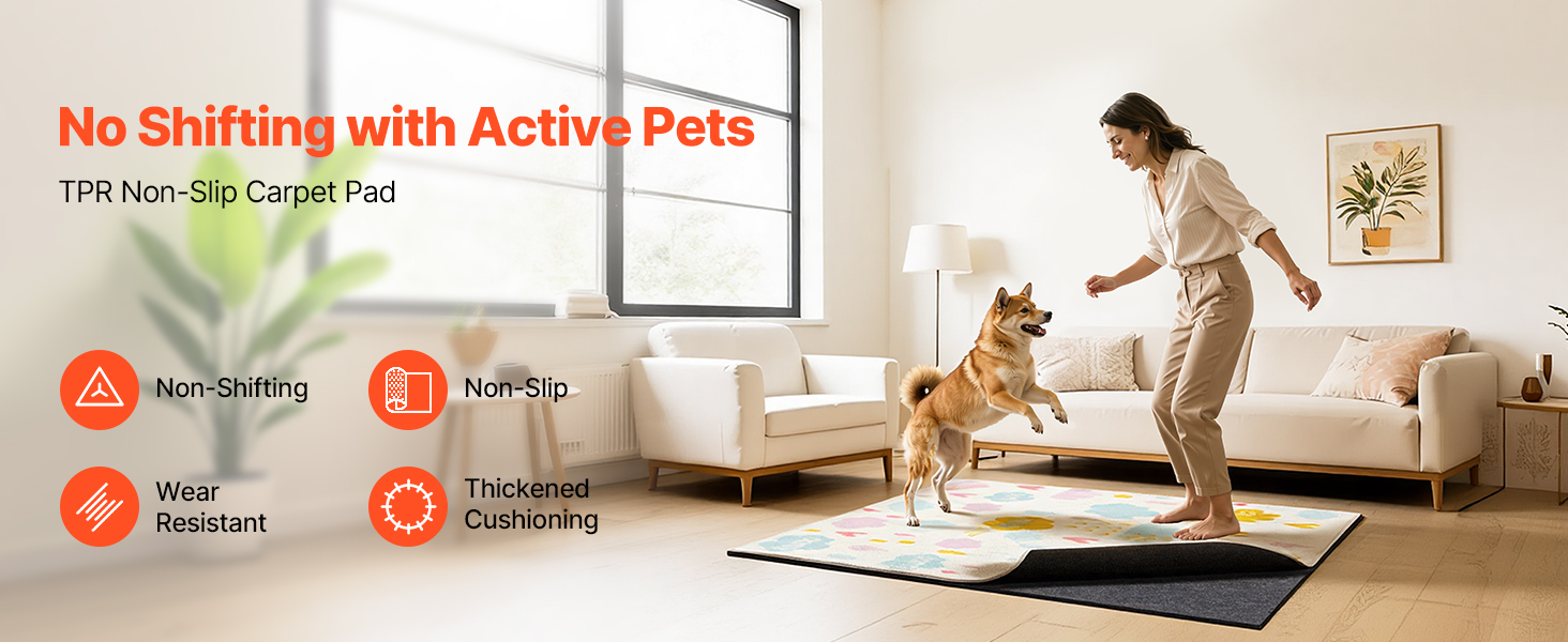 Podložka pod koberec s TPR podkladom zabraňuje kĺzaniu koberca na drevených, dlažbových alebo kobercových podlahách, čím zabezpečuje bezpečnosť vás a vašich domácich miláčikov pri chôdzi alebo hraní.
