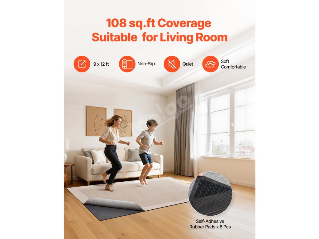 Protišmyková podložka pod koberec 2.74×3.66 m, s filcom a gumou