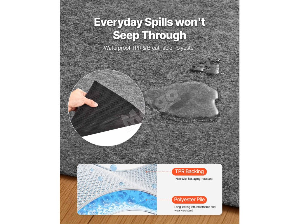 Podložka pod koberec s TPR podkladom zabraňuje kĺzaniu koberca na drevených, dlažbových alebo kobercových podlahách, čím zabezpečuje bezpečnosť vás a vašich domácich miláčikov pri chôdzi alebo hraní.