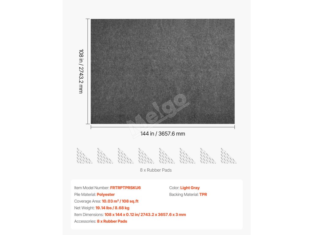 Naša podložka pod koberec obsahuje 8 gumových podložiek. Pre správnu funkčnosť sa uistite, že nálepky sú nalepené iba na podložke z TPR, podľa schémy smeru tlaku.