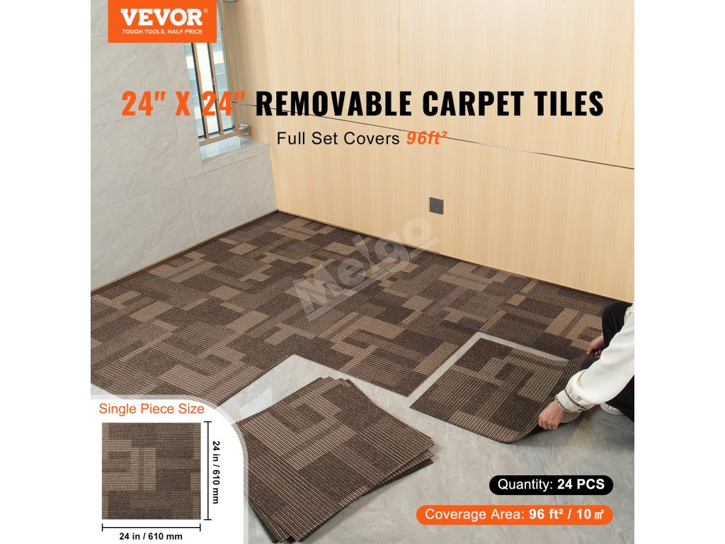 Kobercové dlaždice 24×24" s pripevnenou podložkou, 24 ks, mix hnedých