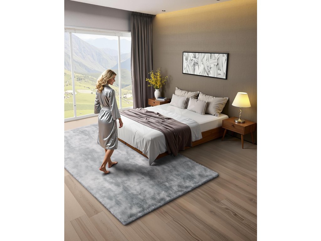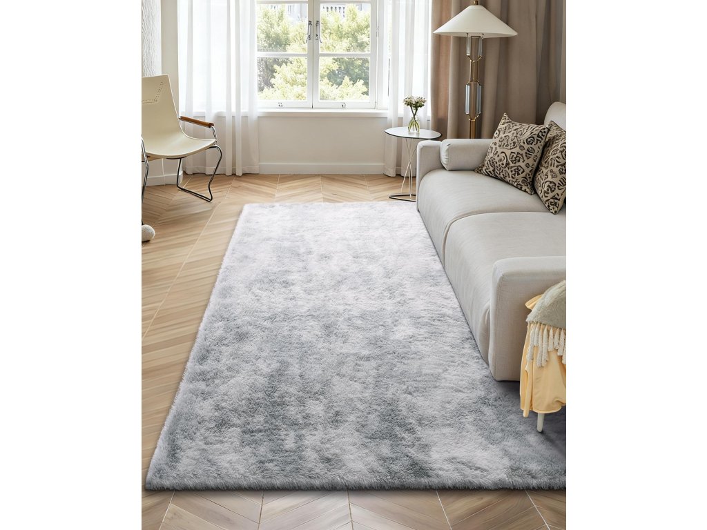 Plyšový koberec 1.83×2.74 m, dlhý vlas, protišmykový, svetlosivý