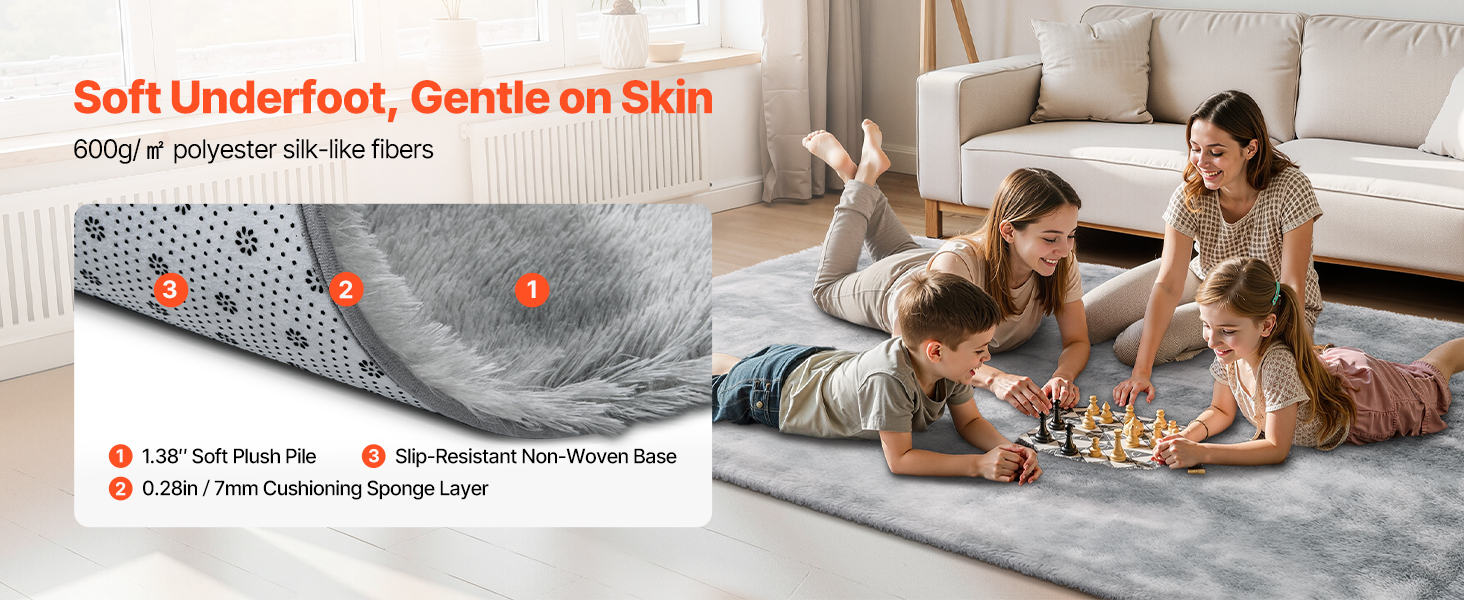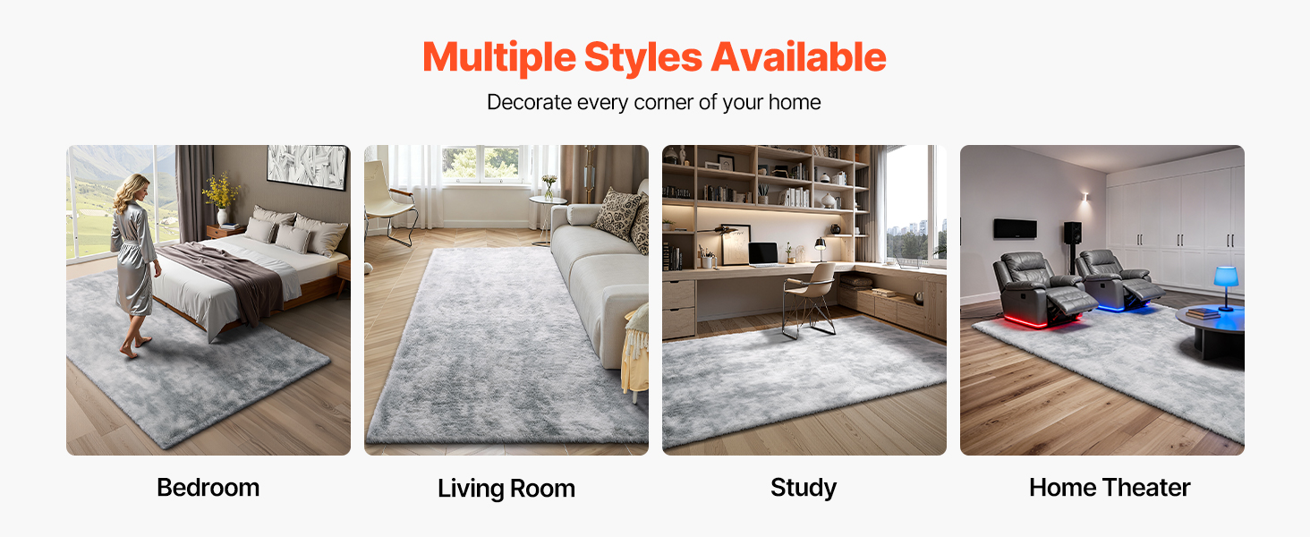 Vďaka jednoduchému a elegantnému dizajnu sa tento plyšový koberec VEVOR do obývačky bez problémov začlení do moderného interiéru. K dispozícii je v sivej, zmiešanej sivej, slonovinovej a čiernej farbe, čím vylepšuje spálne, obývacie izby, pracovne alebo slnečné izby a ponúka štýlový nádych, ktorý funguje vo viacerých priestoroch.