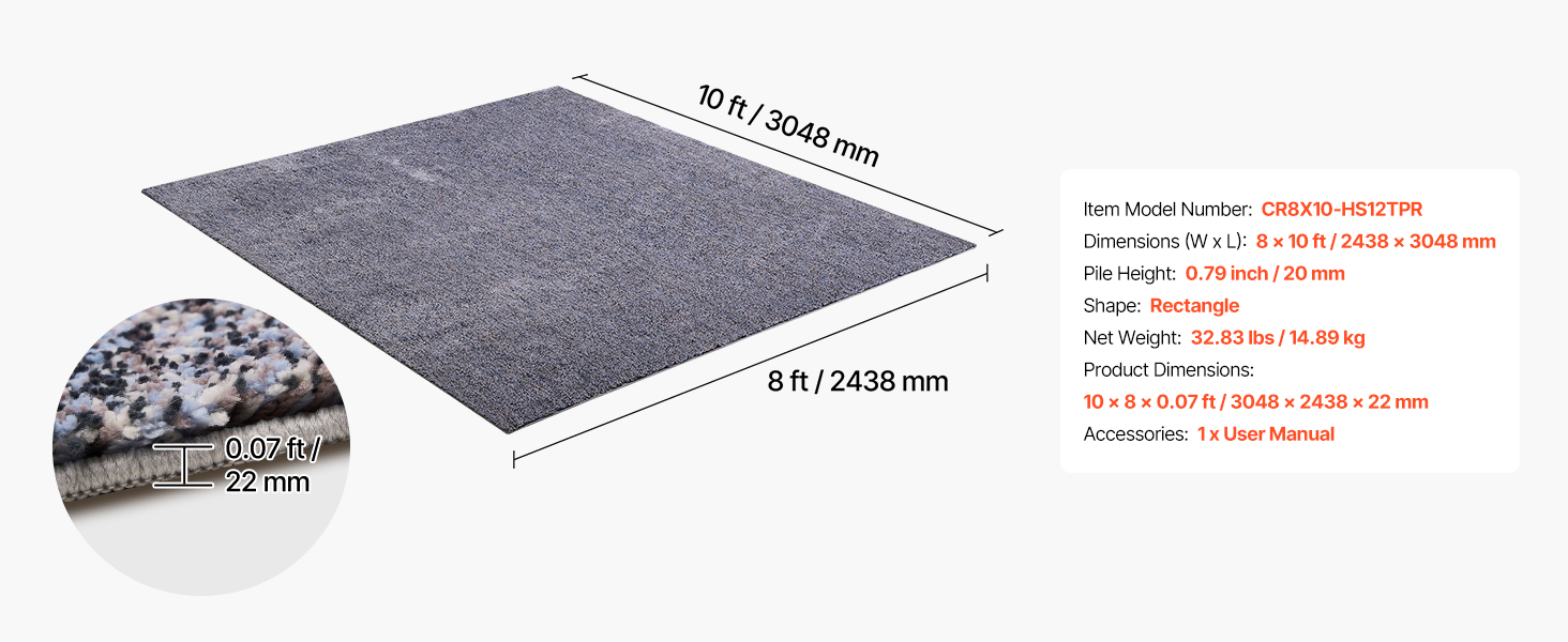 Náš interiérový plyšový koberec vyrobený zo silných tkaných vlákien ponúka hustú mäkkosť, ktorá vydrží každodenné používanie bez deformácie. Jeho príjemná štruktúra sa pod nohami cíti ako obláčik, znižuje hluk a udržiava teplo v miestnosti. S rozmermi 8 x 10 stôp / 2,44 x 3,05 m sa prispôsobí spálňam, pracovniam alebo veľkým obytným priestorom.