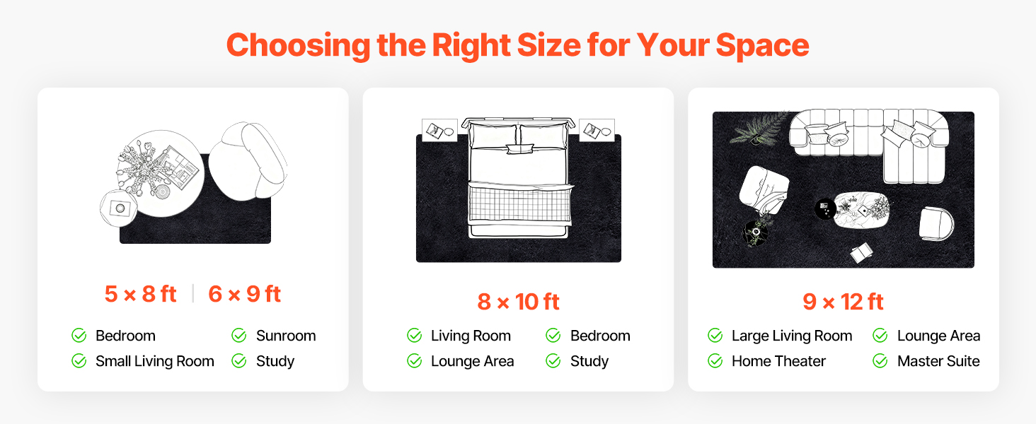 Plyšový koberec 2.44×3.05m čierny, nepúšťajúci chĺpky, protišmykový