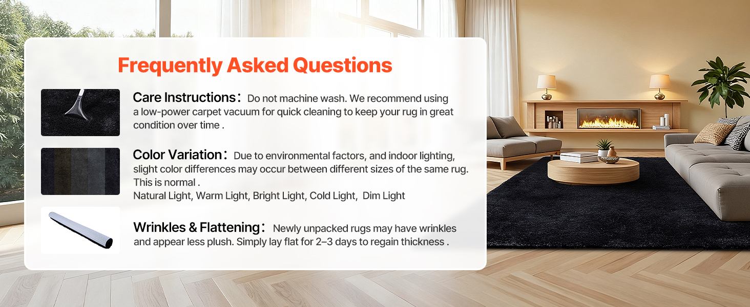 Pokiaľ ide o starostlivosť, tento plošný koberec shag by sa nemal prať; namiesto toho použite vysávač s nízkym výkonom vyrobený pre koberce. Upozorňujeme, že farby sa môžu mierne líšiť v dôsledku osvetlenia alebo nastavenia obrazovky. Po príchode koberec jednoducho rozviňte a položte na rovnú plochu na 2 - 3 dni, aby sa obnovila jeho nadýchanosť.