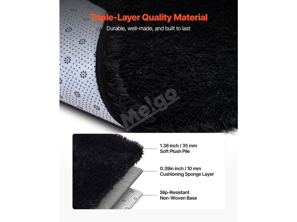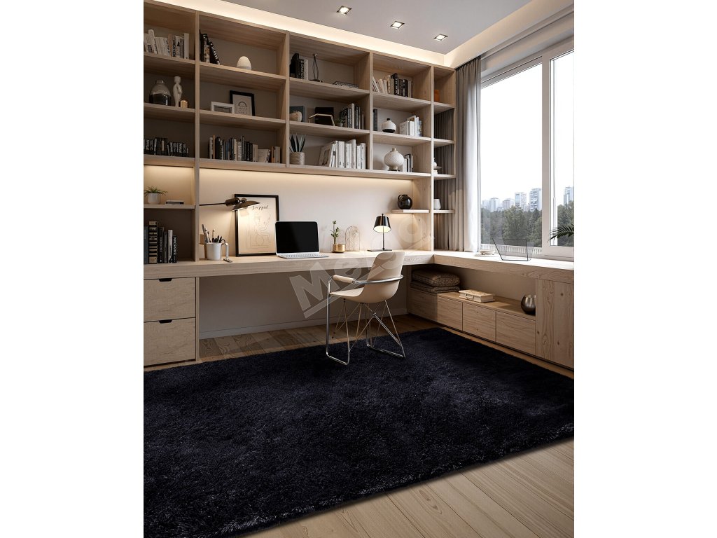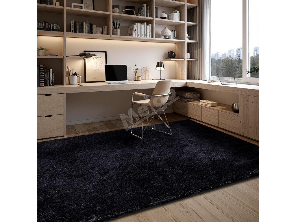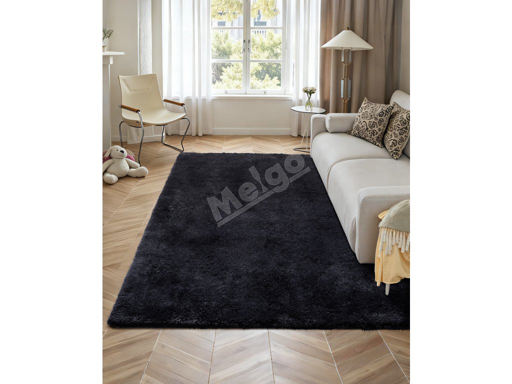 Plyšový koberec 2.44×3.05m čierny, nepúšťajúci chĺpky, protišmykový