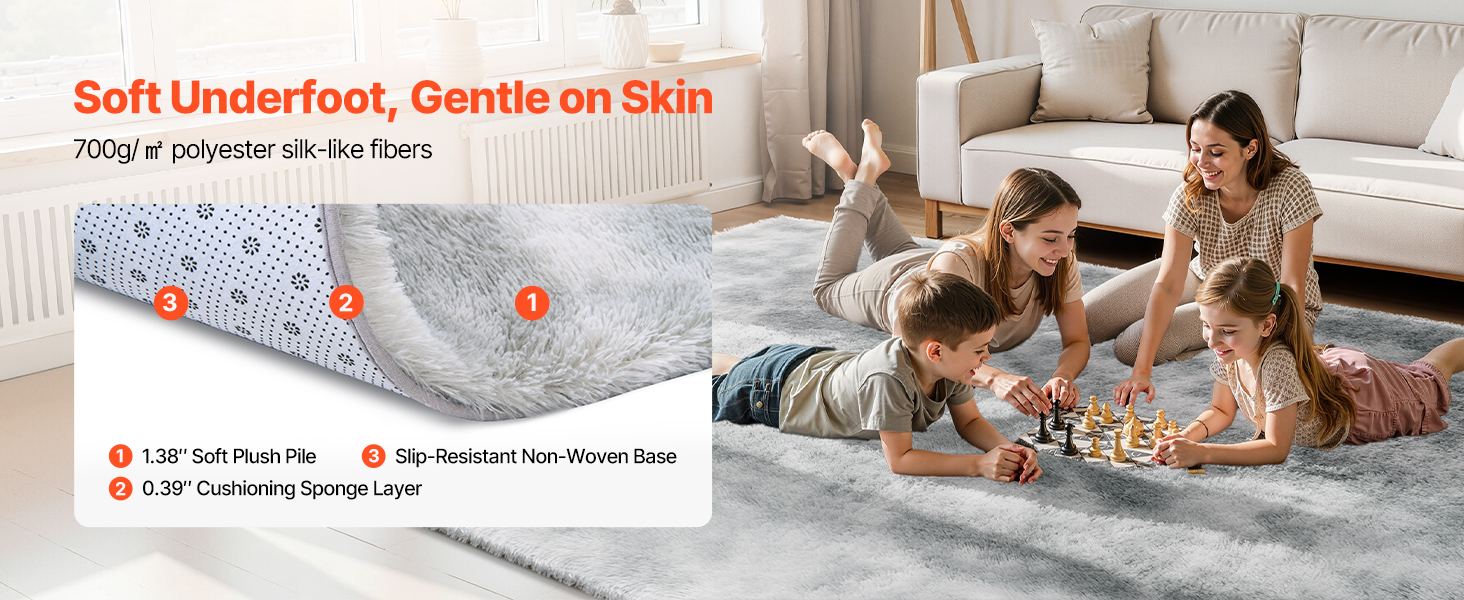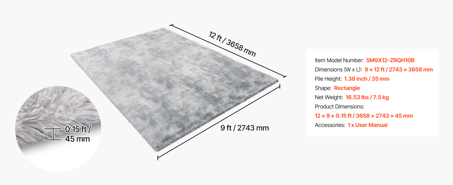 Tento interiérový plyšový koberec, vyrobený z troch odolných vrstiev, je akoby ste šliapali po oblakoch. Jeho hustý, nadýchaný vlas si udržiava tvar pod ťažkým nábytkom, zatiaľ čo bodkovaný netkaný podklad pevne drží na podlahe. Vyberte si veľkosť 9 x 12 stôp/2,74 x 3,66 m do spální, obývacích izieb alebo obývacích priestorov.