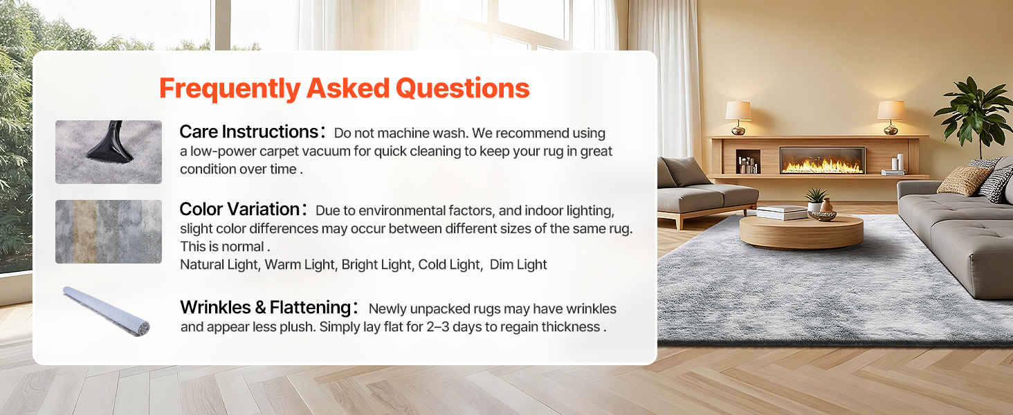 Pokiaľ ide o starostlivosť, tento plošný koberec shag by sa nemal prať; namiesto toho použite vysávač s nízkym výkonom vyrobený pre koberce. Upozorňujeme, že farby sa môžu mierne líšiť v dôsledku osvetlenia alebo nastavenia obrazovky. Po príchode koberec jednoducho rozviňte a položte na rovnú plochu na 2 - 3 dni, aby sa obnovila jeho nadýchanosť.
