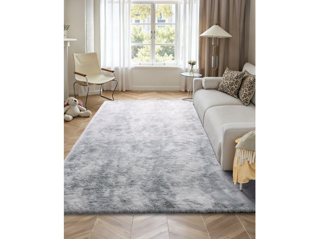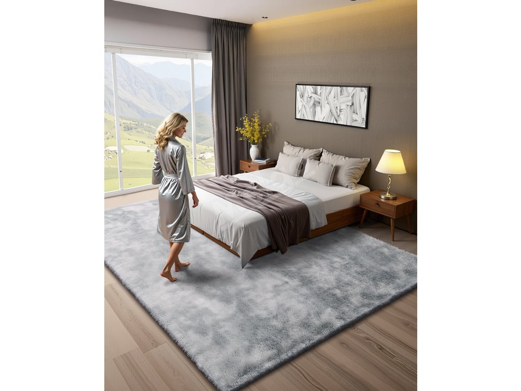 Plyšový koberec 2.74×3.66m, dlhý vlas, svetlosivý, protišmyk