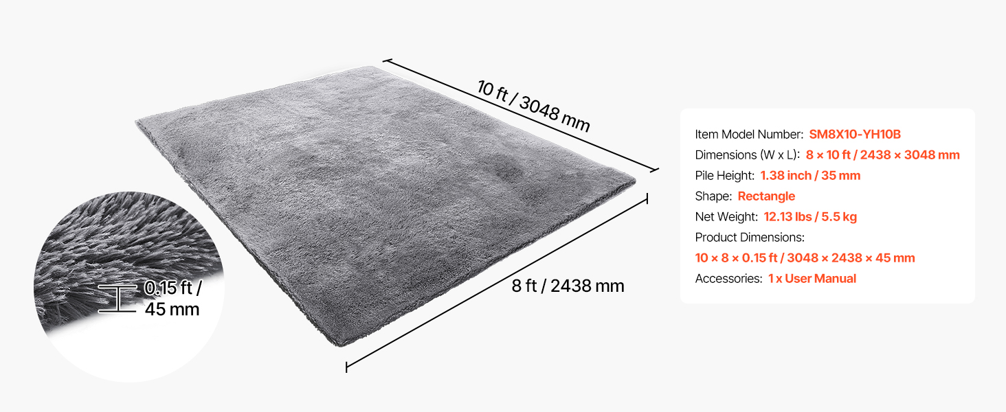 Tento interiérový plyšový koberec, vyrobený z troch odolných vrstiev, je akoby ste šliapali po oblakoch. Jeho hustý, nadýchaný vlas si udržiava tvar pod ťažkým nábytkom, zatiaľ čo bodkovaný netkaný podklad pevne drží na podlahe. Vyberte si rozmer 8 x 10 stôp/2,44 x 3,05 m do spální, obývacích izieb alebo obývacích priestorov.