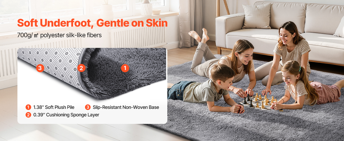 Tento plyšový koberec do obývačky, navrhnutý s čistými líniami a nadčasovým vzhľadom, je k dispozícii v univerzálnych farbách - sivej, zmiešanej sivej, slonovinovej a čiernej. Ľahko sa kombinuje s moderným interiérom domácnosti a možno ho umiestniť do spální, obývacích izieb, pracovní alebo obývacích priestorov na každodenné pohodlie.
