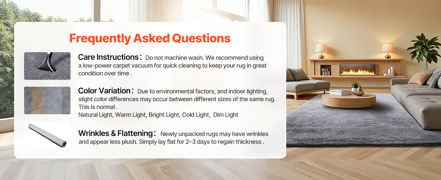 Pokiaľ ide o starostlivosť, tento plošný koberec shag by sa nemal prať; namiesto toho použite vysávač s nízkym výkonom vyrobený pre koberce. Upozorňujeme, že farby sa môžu mierne líšiť v dôsledku osvetlenia alebo nastavenia obrazovky. Po príchode jednoducho rozviňte a položte na rovnú plochu na 2 - 3 dni, aby sa obnovila nadýchanosť