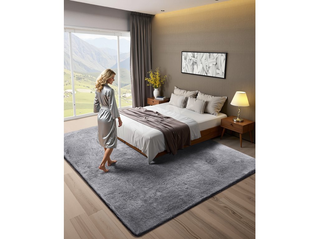Plyšový koberec do interiéru 2.44×3.05m, protišmykový, dymovo sivý