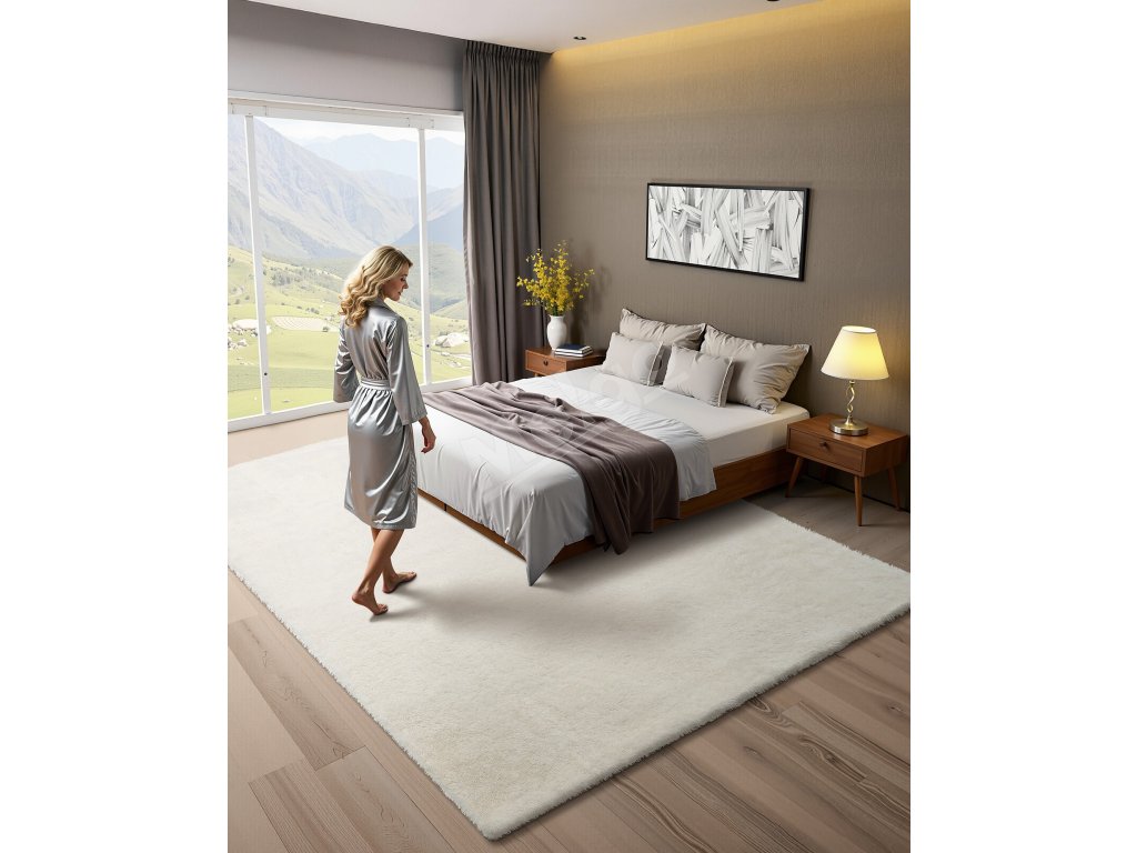 Tento shag koberec má mäkký povrch z dlhých vlákien s odpruženým hubovým stredom, ktorý poskytuje jemný pocit aj pri chôdzi naboso. Podklad z netkanej textílie s bodkovaným úchytom ho udržiava stabilný na podlahe, čím zabezpečuje teplo a pohodlie od spální až po obývacie izby.