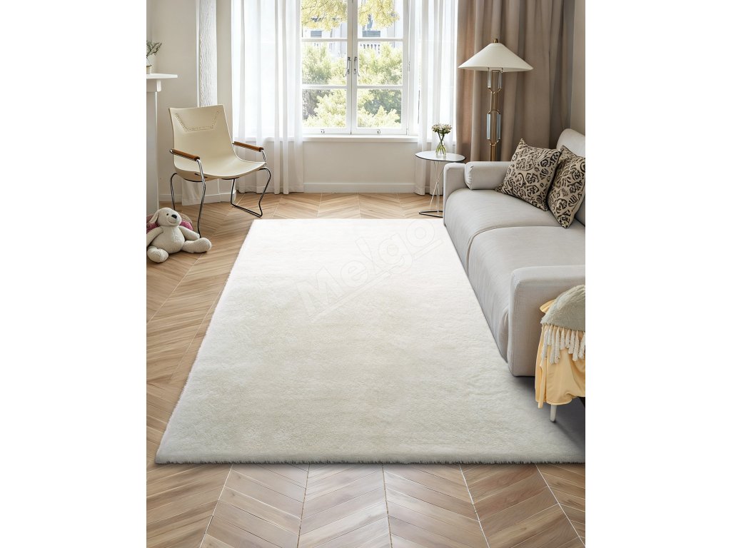 Plyšový kusový koberec 2,44×3,05m, slonovinová, protišmykový