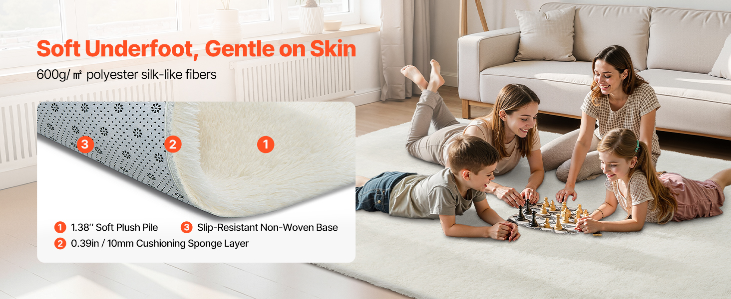 Vďaka jednoduchému a elegantnému dizajnu sa tento plyšový koberec VEVOR do obývačky bez problémov začlení do moderného interiéru. K dispozícii je v sivej, zmiešanej sivej, slonovinovej a čiernej farbe, čím vylepšuje spálne, obývacie izby, pracovne alebo obývacie priestory a ponúka štýlový nádych, ktorý funguje vo viacerých priestoroch.
