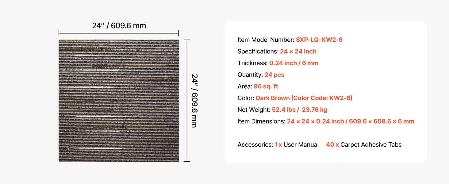 | Rozmery položky | 24 x 24 x 0,24 palca / 609,6 x 609,6 x 6 mm |