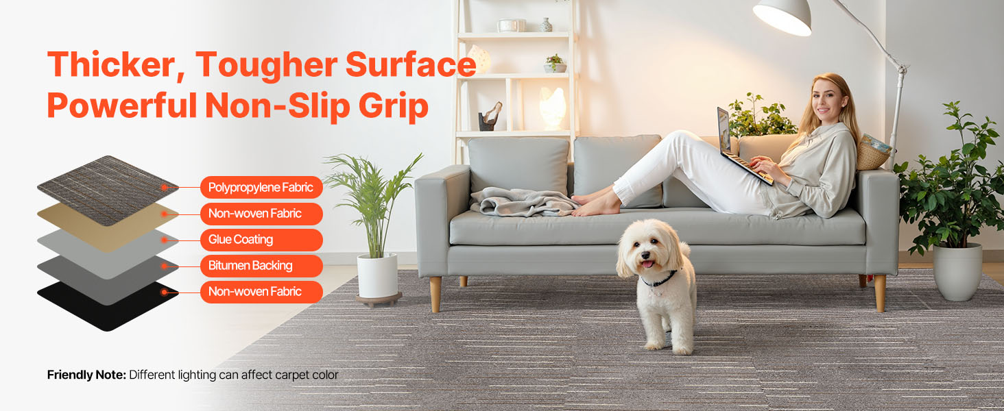 Tieto modulárne kobercové dlaždice sú univerzálne a ľahko sa používajú, majú povrch s nízkym vlasom, ktorý sa jednoducho udržiava. Poškodené alebo opotrebované dlaždice môžete kedykoľvek a kdekoľvek vymeniť - je to praktické a štýlové. Ideálne pre domácnosti, kancelárie, prenájmy alebo akékoľvek priestory, ktoré potrebujú flexibilnú, bezproblémovú podlahovú krytinu.