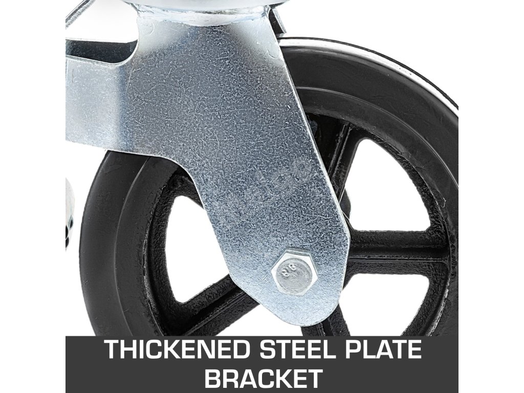 Kolieska VEVOR s nosnosťou 1100 lbs majú vynikajúcu oceľovú konštrukciu. Pozinkovaný oceľový plech s hrúbkou 5 mm je odolný voči korózii. To zaručuje dlhotrvajúci výkon. Oceľové telo je pevné a spoľahlivé. Odolá náročným podmienkam a veľkému zaťaženiu. Pozinkovaný plech dodáva ďalšiu vrstvu ochrany. Odoláva korózii a opotrebovaniu, čím predlžuje životnosť koliesok. Táto konštrukcia zaručuje, že kolieska zostanú funkčné dlhé roky. Kovové komponenty poskytujú robustnú oporu. Sú navrhnuté tak, aby zvládli náročné úlohy. Odolná konštrukcia je ideálna pre náročné aplikácie. Tieto kolieska sú skonštruované tak, aby vydržali a dobre fungovali. Dôverujte ich robustnej konštrukcii, aby ste ich mohli spoľahlivo používať.