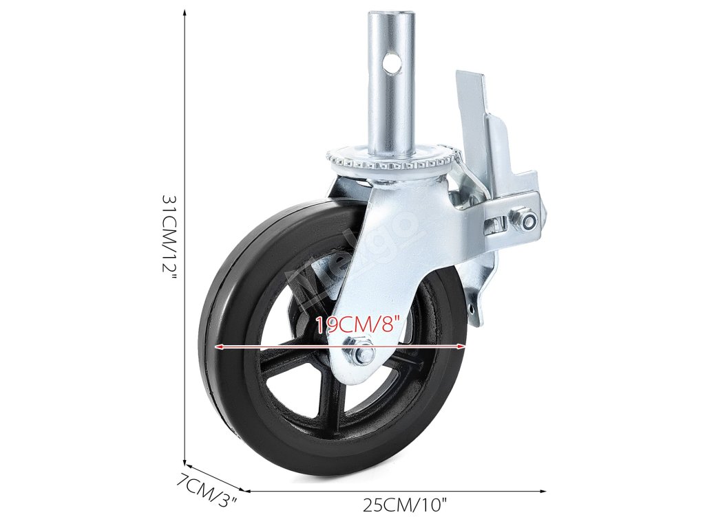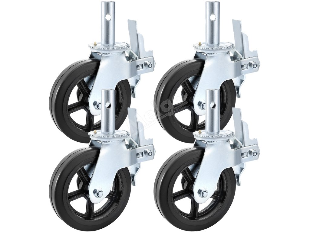 Tieto kolieska na lešenie sú univerzálne a viacúčelové. Možno ich použiť na lešenie, vybavenie alebo nábytok. Používajú sa na letové skrine a vystavenie zariadení a strojov. Vďaka týmto veciam sú vhodné na ľahké aj ťažké aplikácie. Ich všestrannosť z nich robí cenný doplnok každej zostavy. Ľahko premiestňujú ťažké zariadenia. Mali by ste ich používať na skrine, stojany alebo dokonca nábytok, pretože majú neuveriteľne vysokú nosnosť a plynulý pohyb, vďaka čomu sú ideálne na rôzne úlohy. Sú ideálne na použitie v interiéri aj exteriéri. Užívajte si ich spoľahlivosť a výkon pri rôznych aplikáciách! Tieto kolieska dokážu slúžiť vašim potrebám, takže sa na ne môžete spoľahnúť všetci.