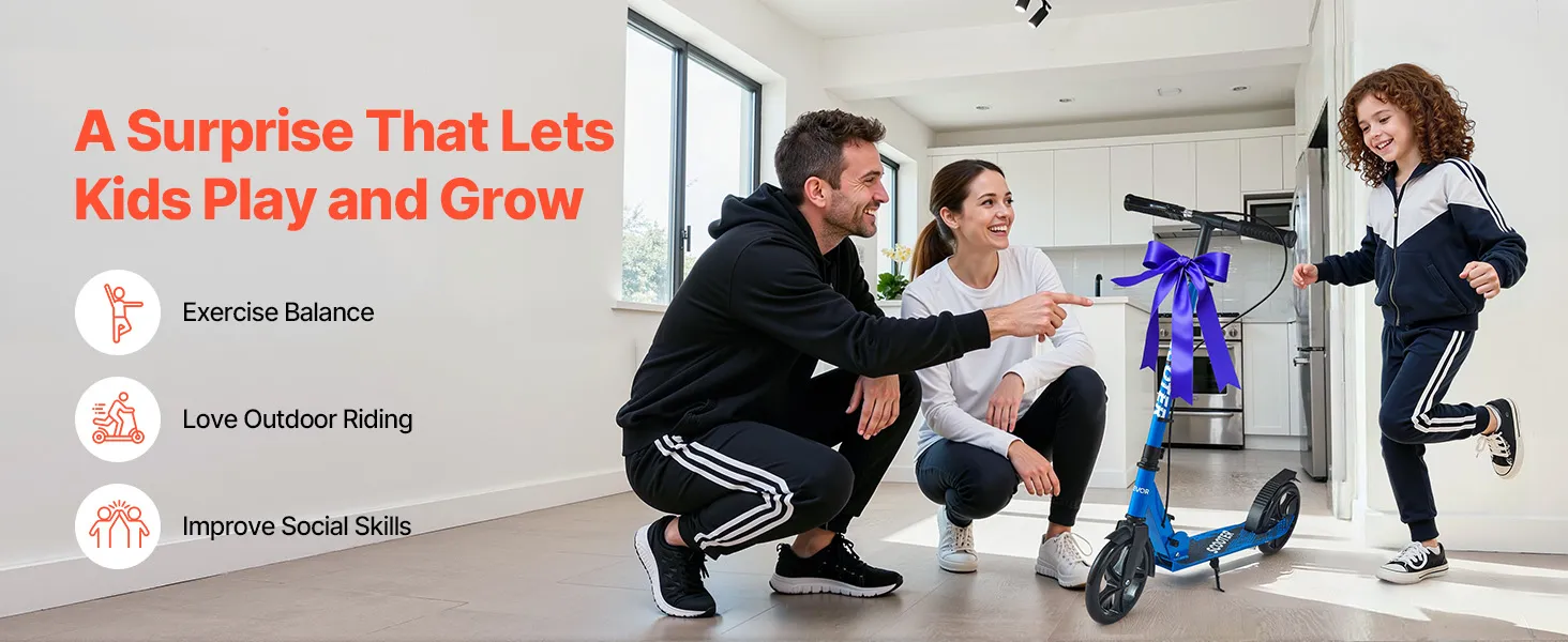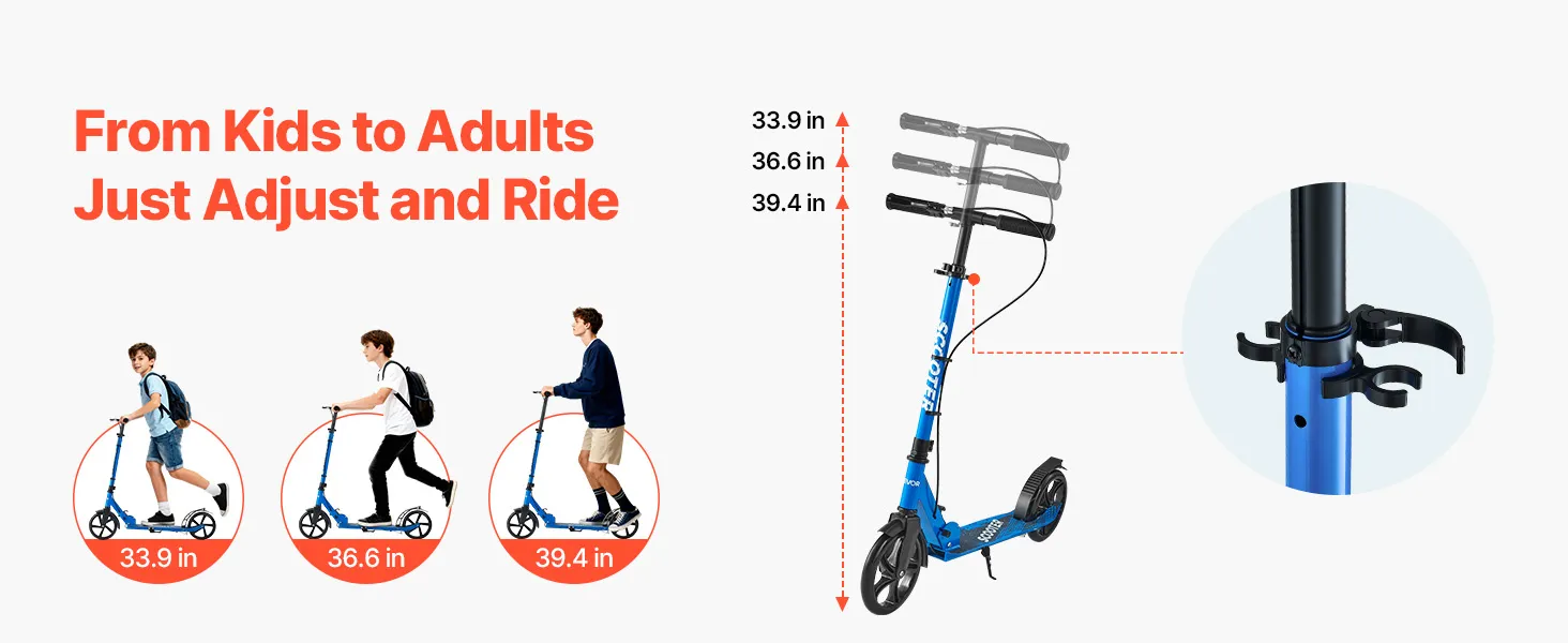 Táto detská kolobežka je vhodná pre rôzne vekové skupiny, umožňuje deťom užiť si aktívnu zábavu a rodičom poskytuje pohodlnú možnosť cestovania. Vďaka vysokej nosnosti a veľkým kolesám jazdí hladko na vnútorných podlahách aj vonkajších povrchoch.
