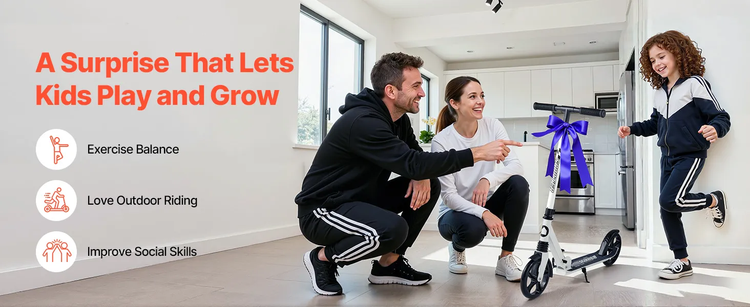 Táto detská kolobežka je vhodná pre rôzne vekové skupiny, umožňuje deťom užiť si aktívnu zábavu a rodičom poskytuje pohodlnú možnosť cestovania. Vďaka vysokej nosnosti a veľkým kolesám jazdí hladko na vnútorných podlahách aj vonkajších povrchoch.