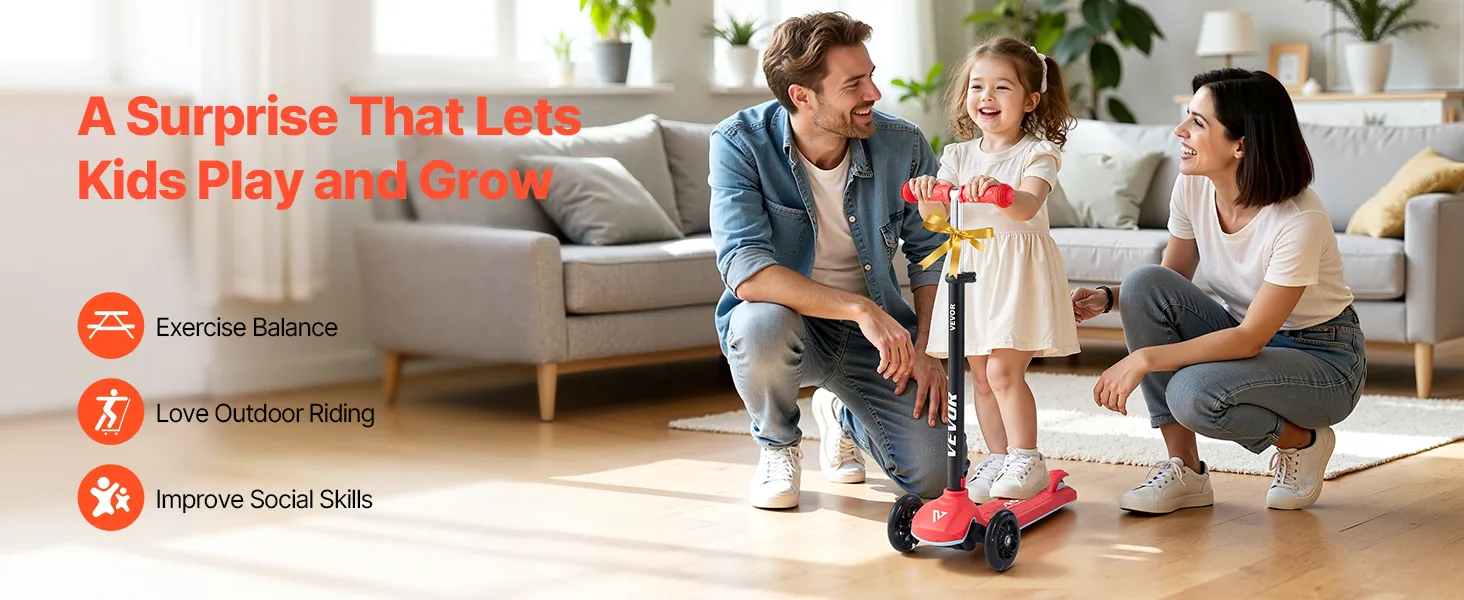 Táto detská kopacia kolobežka je určená pre deti od 3 rokov a prináša aktívnu zábavu do detstva. Jej odolná konštrukcia a veľké kolesá zabezpečujú plynulú jazdu v interiéri aj exteriéri a rodičom poskytujú pokoj. Riadenie v náklone pomáha rozvíjať rovnováhu a koordináciu a začiatočníci môžu jazdu zvládnuť hneď.