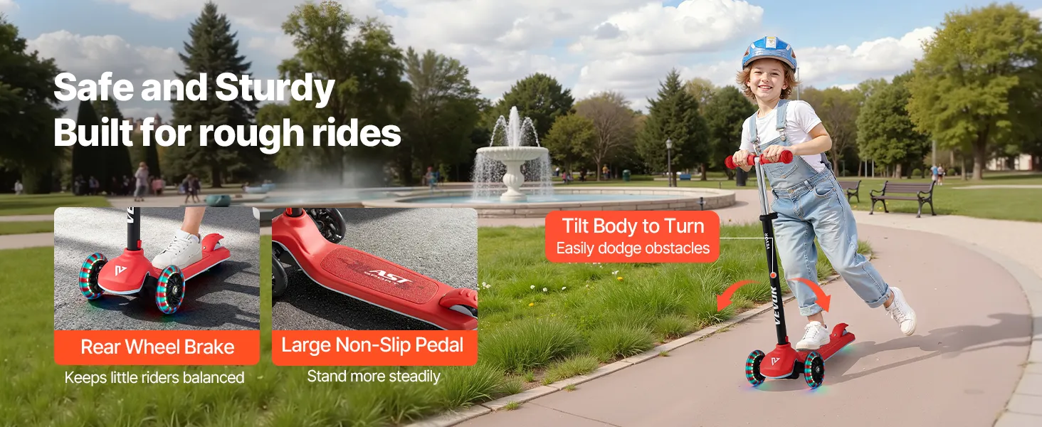 Naša detská kopacia kolobežka je vybavená protišmykovými krytmi rukoväte pre bezpečné uchopenie, ktoré zabezpečujú, že sa ľahko nevyšmykne z malých rúk.