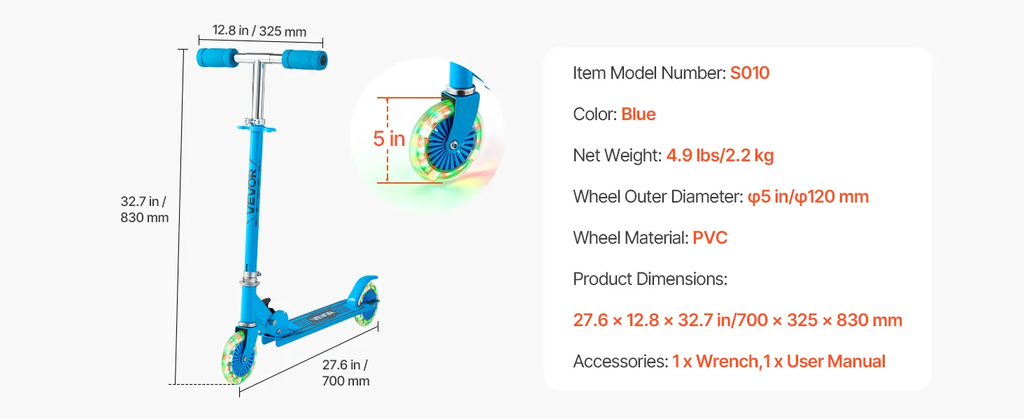 Detská kolobežka 2-kolesová, svietiace kolesá, nosnosť 49.9 kg