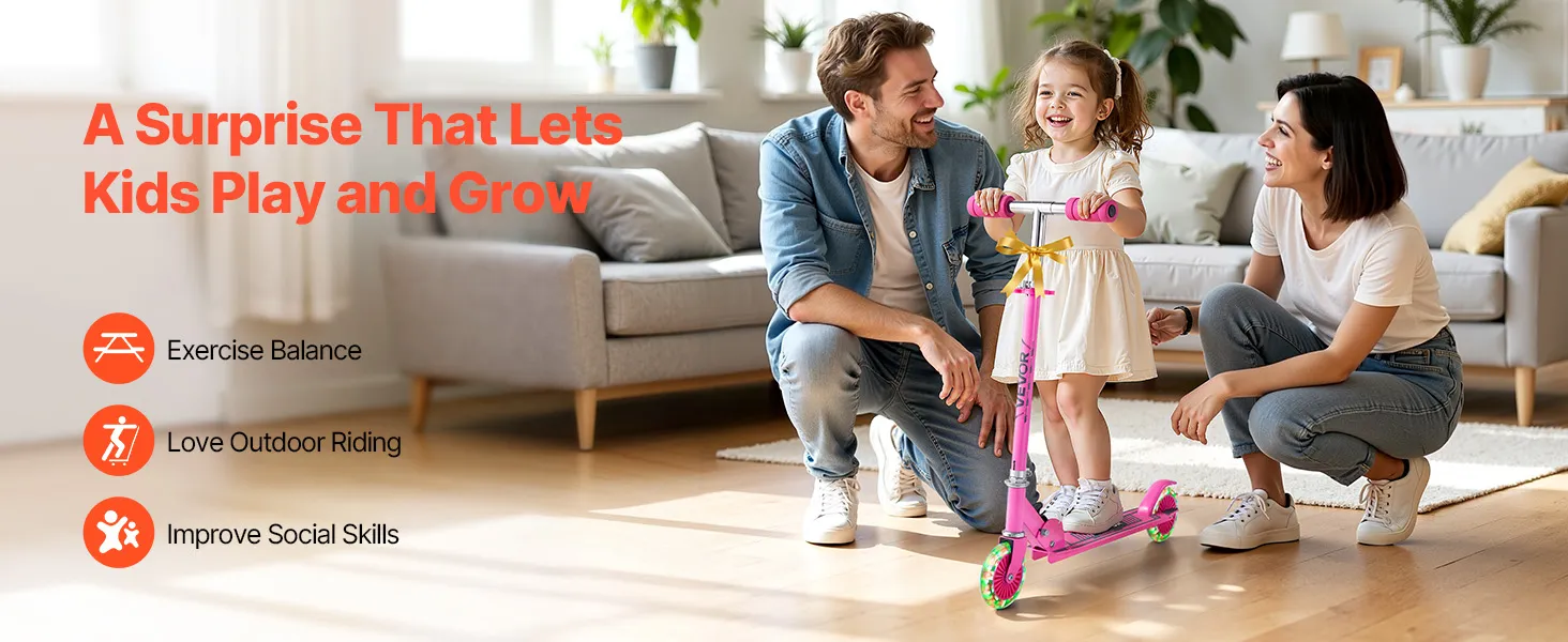 Táto detská kopacia kolobežka je určená pre deti od 3 rokov a prináša aktívnu zábavu do detstva. Jej odolná konštrukcia a veľké kolesá zabezpečujú plynulú jazdu v interiéri aj exteriéri a rodičom poskytujú pokoj. Riadenie v náklone pomáha rozvíjať rovnováhu a koordináciu a začiatočníci môžu jazdu zvládnuť hneď.