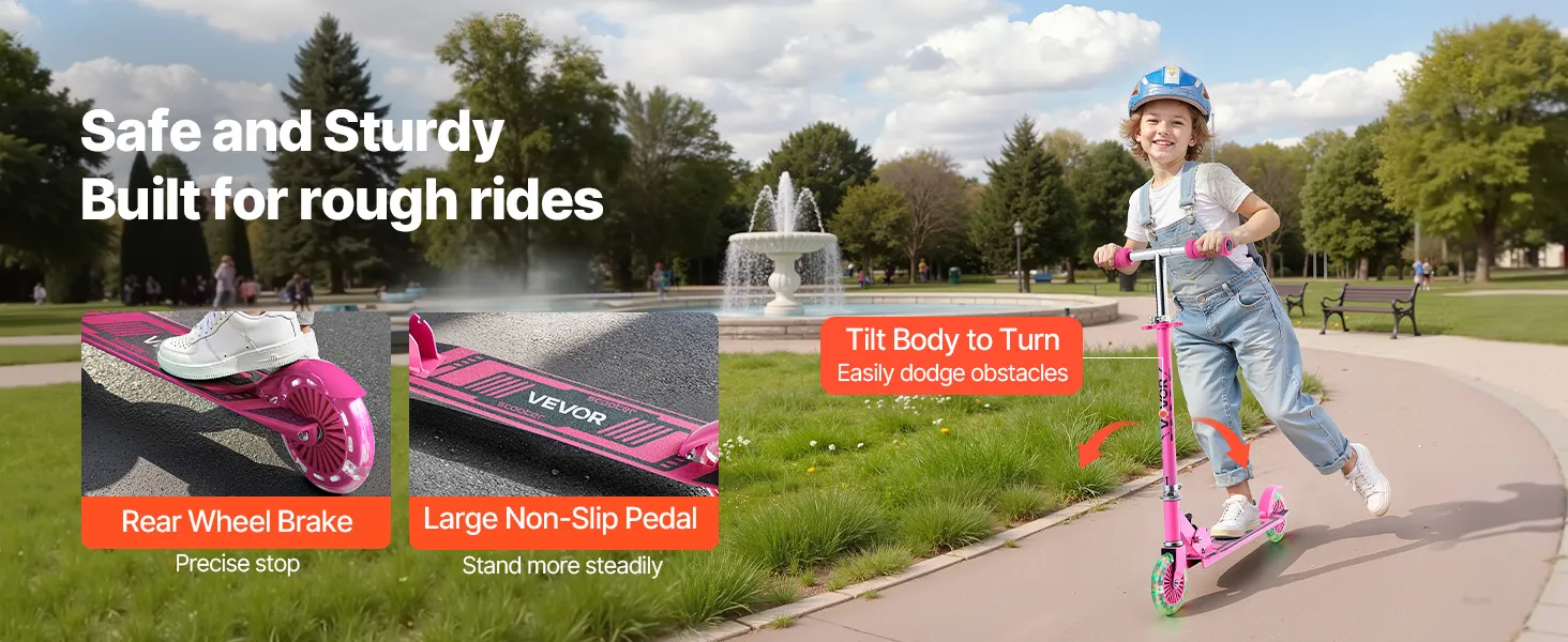 Naša detská kopacia kolobežka je vybavená protišmykovými krytmi rukoväte pre bezpečné uchopenie, ktoré zabezpečujú, že sa ľahko nevyšmykne z malých rúk.