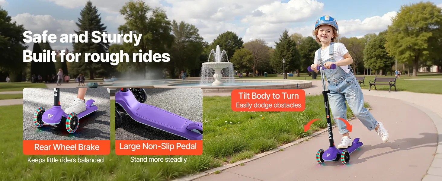 Naša detská kopacia kolobežka je vybavená protišmykovými krytmi rukoväte pre bezpečné uchopenie, ktoré zabezpečujú, že sa ľahko nevyšmykne z malých rúk.