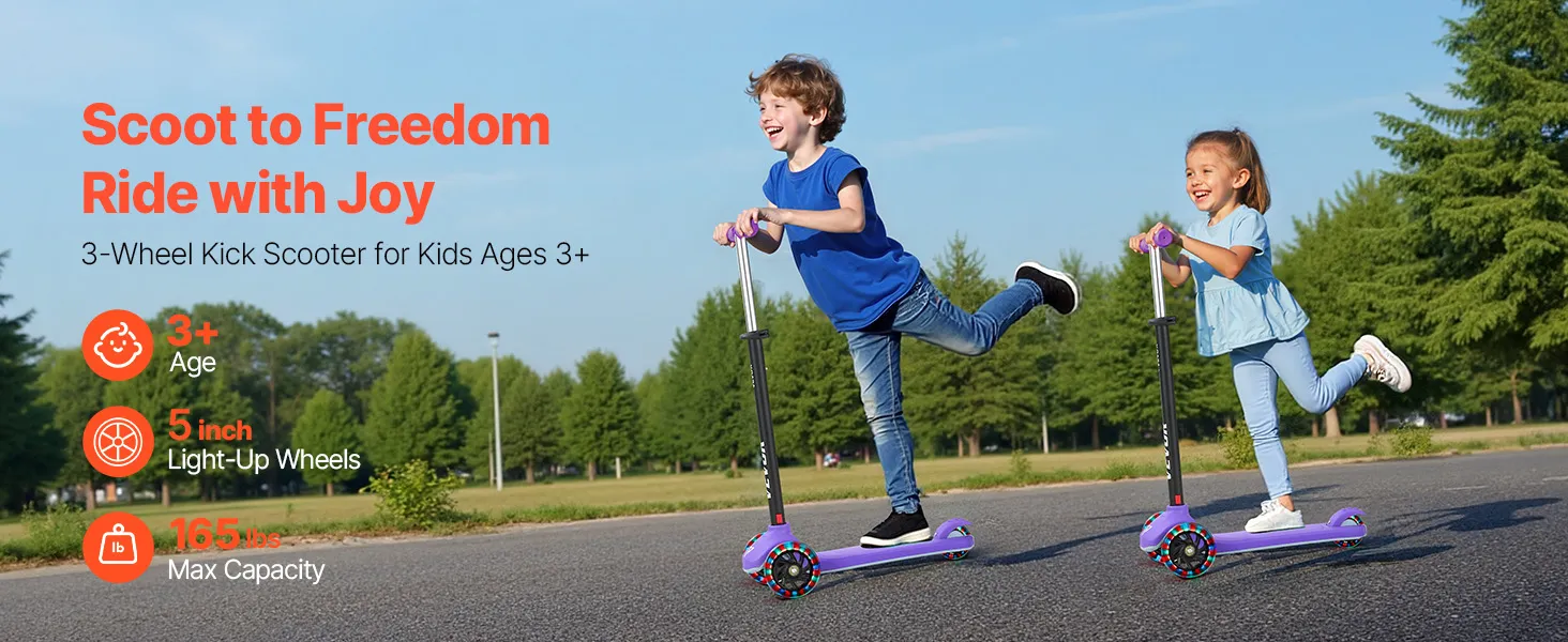 Táto detská kopacia kolobežka je určená pre deti od 3 rokov a prináša aktívnu zábavu do detstva. Jej odolná konštrukcia a veľké kolesá zabezpečujú plynulú jazdu v interiéri aj exteriéri a rodičom poskytujú pokoj. Riadenie v náklone pomáha rozvíjať rovnováhu a koordináciu a začiatočníci môžu jazdu zvládnuť hneď.