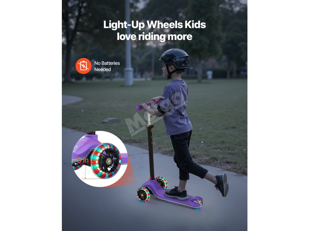 Kolobežka pre deti 3+ trojkolesová, svietiace kolesá, nosnosť 74.8 kg