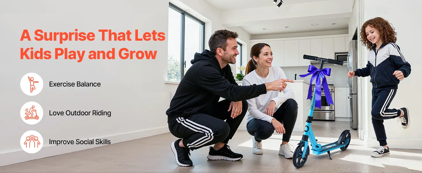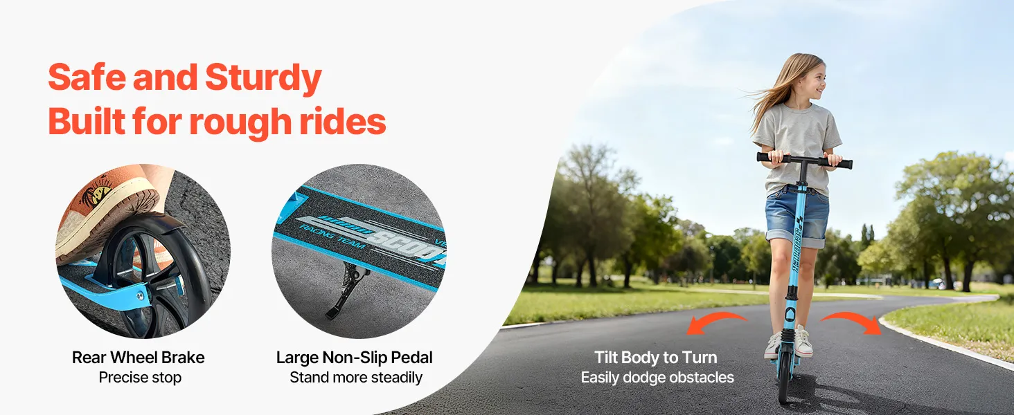 Naša detská kopacia kolobežka je vybavená protišmykovými krytmi rukoväte pre bezpečné uchopenie, ktoré zabezpečujú, že sa ľahko nevyšmykne z malých rúk.