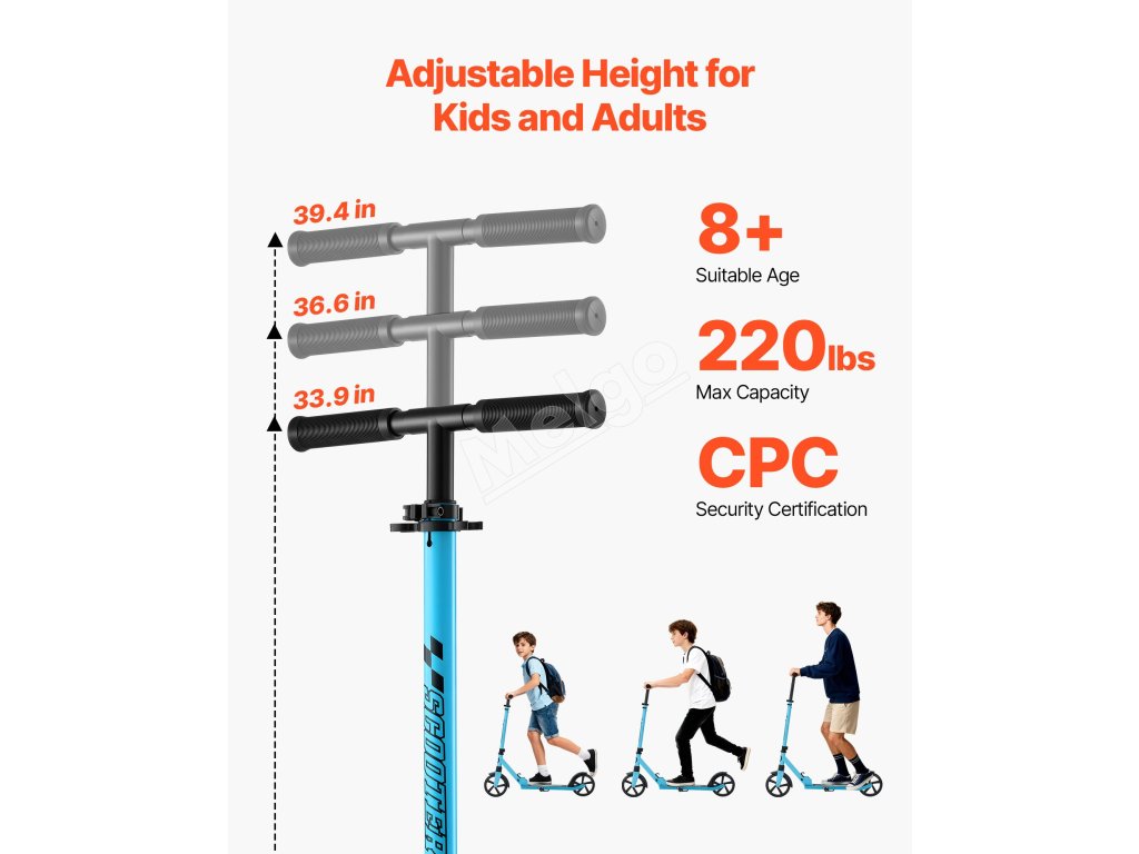 Táto detská kolobežka je vhodná pre rôzne vekové skupiny, umožňuje deťom užiť si aktívnu zábavu a rodičom poskytuje pohodlnú možnosť cestovania. Vďaka vysokej nosnosti a veľkým kolesám jazdí hladko na vnútorných podlahách aj vonkajších povrchoch.
