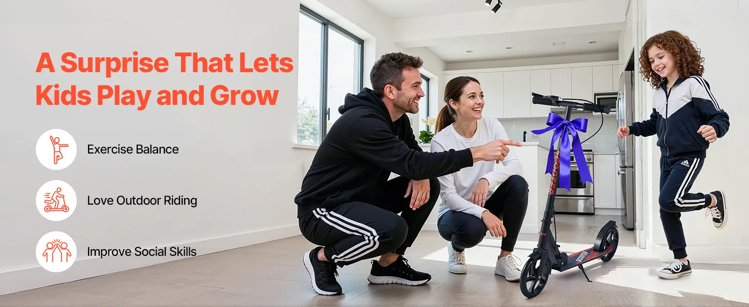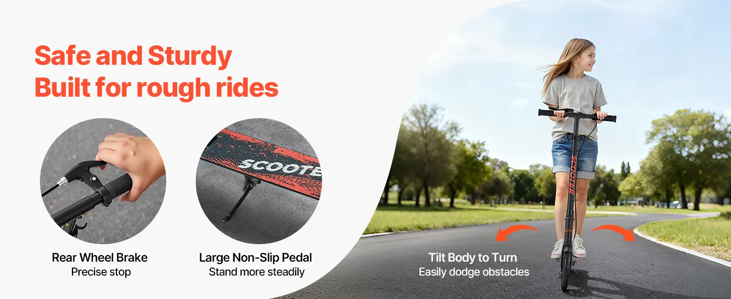 Naša detská kopacia kolobežka je vybavená protišmykovými krytmi rukoväte pre bezpečné uchopenie, ktoré zabezpečujú, že sa ľahko nevyšmykne z malých rúk.