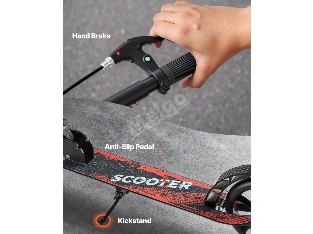 Naša detská kopacia kolobežka je vybavená protišmykovými krytmi rukoväte pre bezpečné uchopenie, ktoré zabezpečujú, že sa ľahko nevyšmykne z malých rúk.