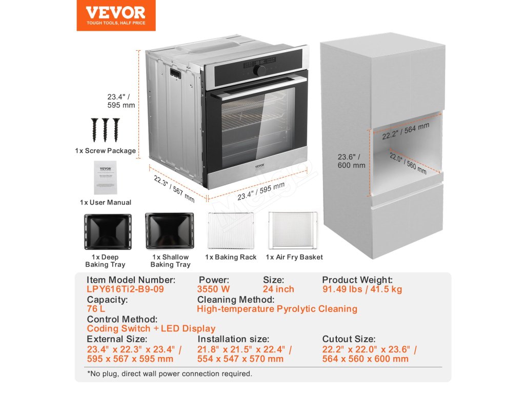 Vstavaná elektrická rúra 24" 2.68 Cu.Ft 16 funkcií 200°C/5min 3550W