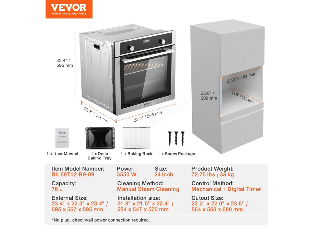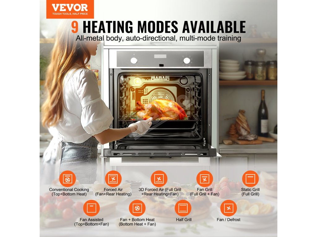 Vstavaná elektrická rúra 24" 2.68 Cu.Ft 3550W 9 programov 200°C/5min
